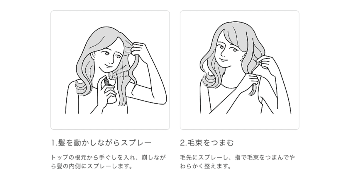 パサつきやすい毛先に自然なツヤとやわらかさを与えるスプレー。