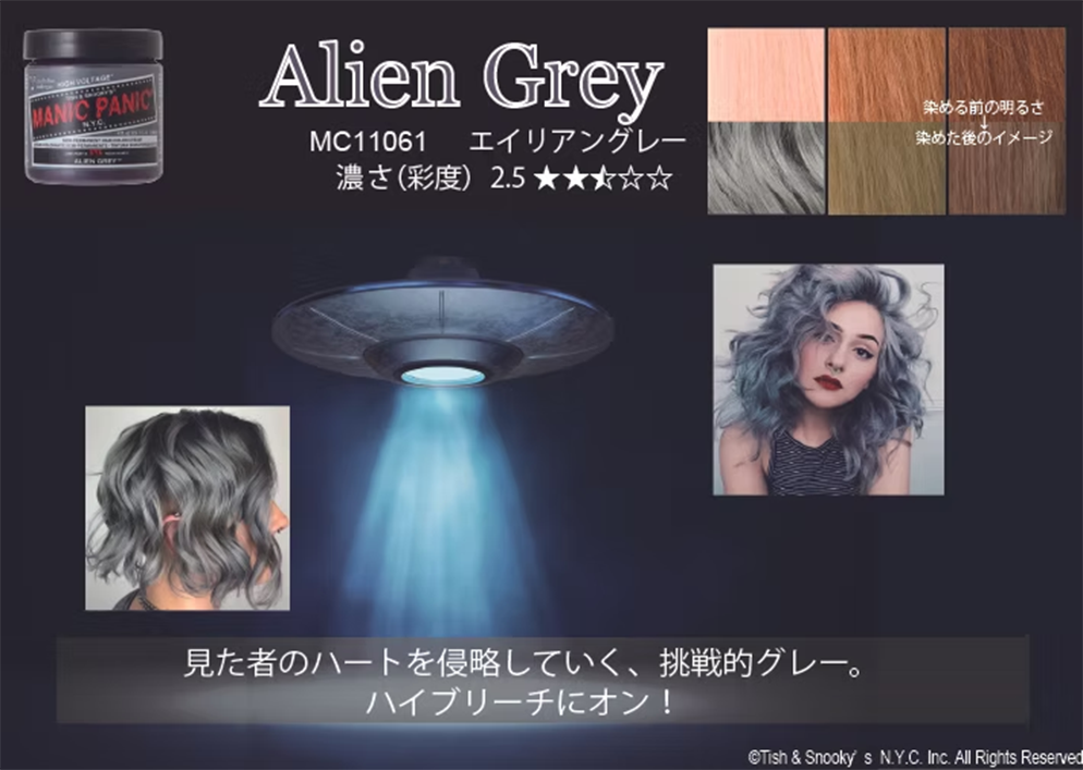 見る者のセンスや芸術性をくすぐるマニックパニックは、最高級の彩度の高さへと髪を染め上げます。