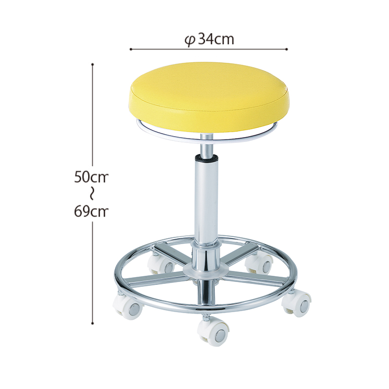 リングステップ、全方向操作式のリング昇降レバー、お掃除メンテナンスキャスターを装備した高機能スツール。