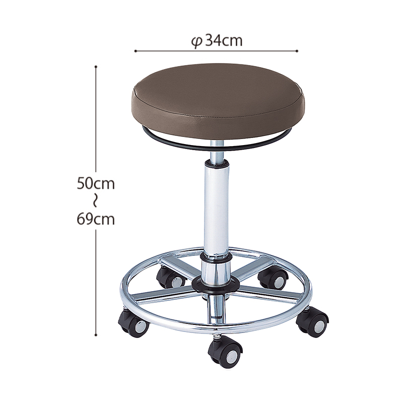 リングステップ、全方向操作式のリング昇降レバー、お掃除メンテナンスキャスターを装備した高機能スツール。
