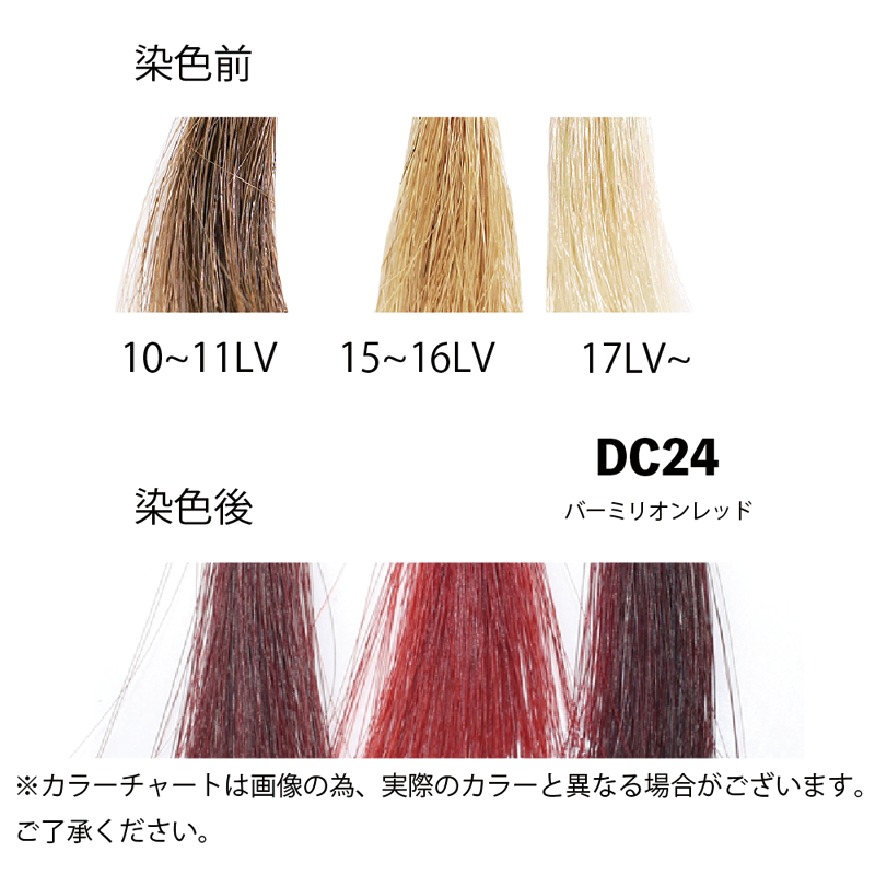 ※ 黒髪や白髪、茶髪に使用すると発色が良くない場合もございます。