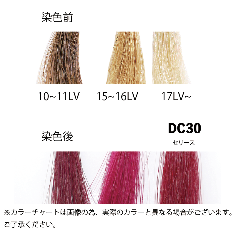 ※ 黒髪や白髪、茶髪に使用すると発色が良くない場合もございます。