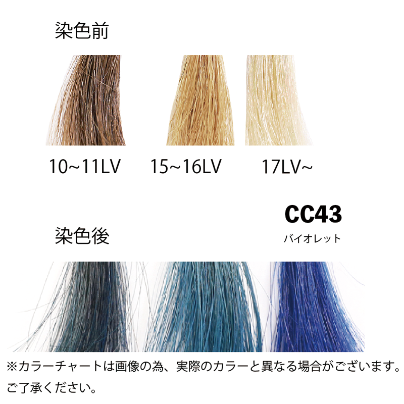 ※ ベースとなる髪色によっては、カラーチャートは実際に使用した際の発色と異なる場合もございます。