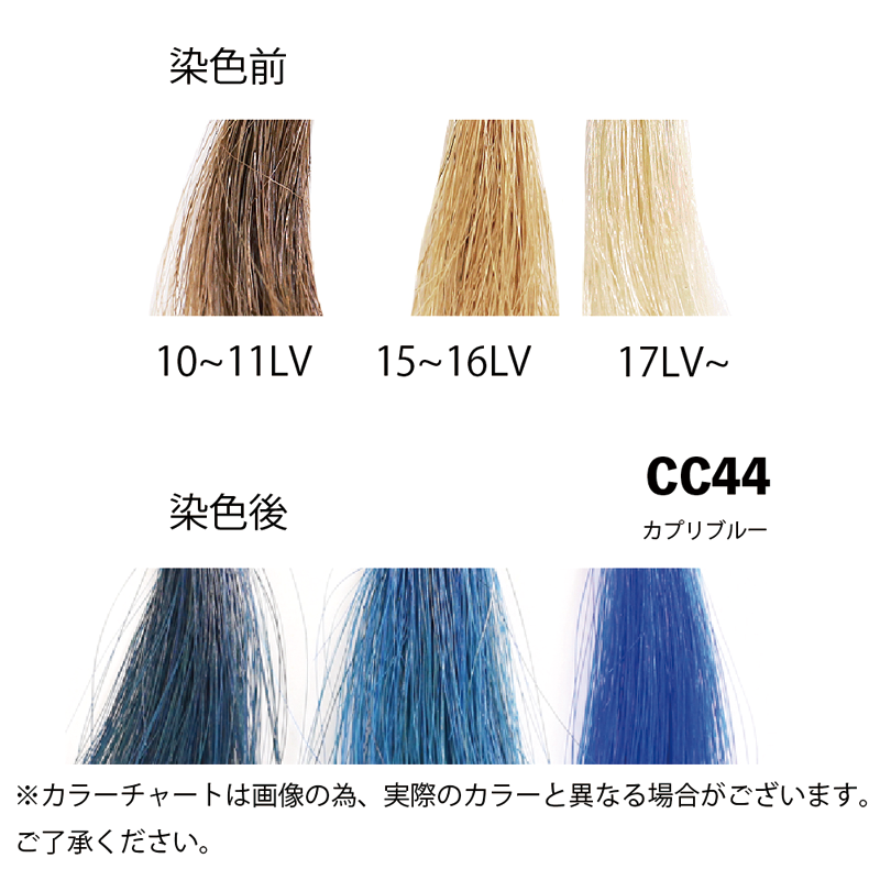 ※ ベースとなる髪色によっては、カラーチャートは実際に使用した際の発色と異なる場合もございます。