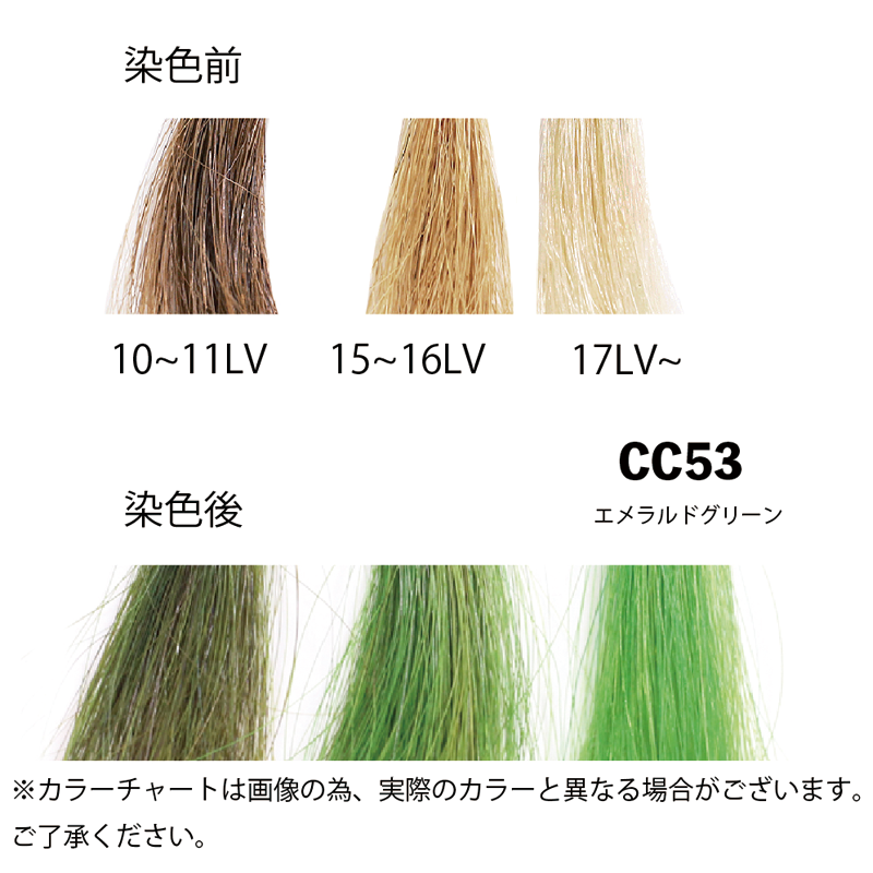※ ベースとなる髪色によっては、カラーチャートは実際に使用した際の発色と異なる場合もございます。