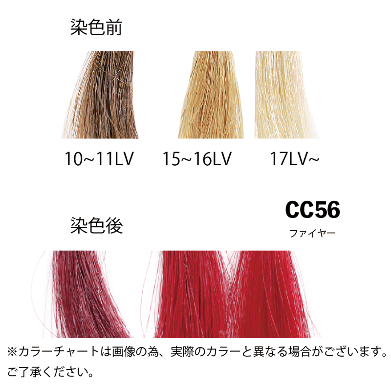 ※ ベースとなる髪色によっては、カラーチャートは実際に使用した際の発色と異なる場合もございます。