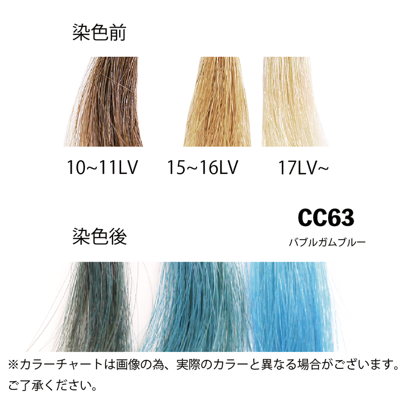※ ベースとなる髪色によっては、カラーチャートは実際に使用した際の発色と異なる場合もございます。