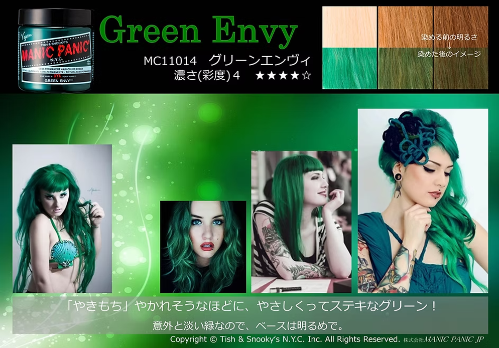 見る者のセンスや芸術性をくすぐるマニックパニックは、最高級の彩度の高さへと髪を染め上げます。