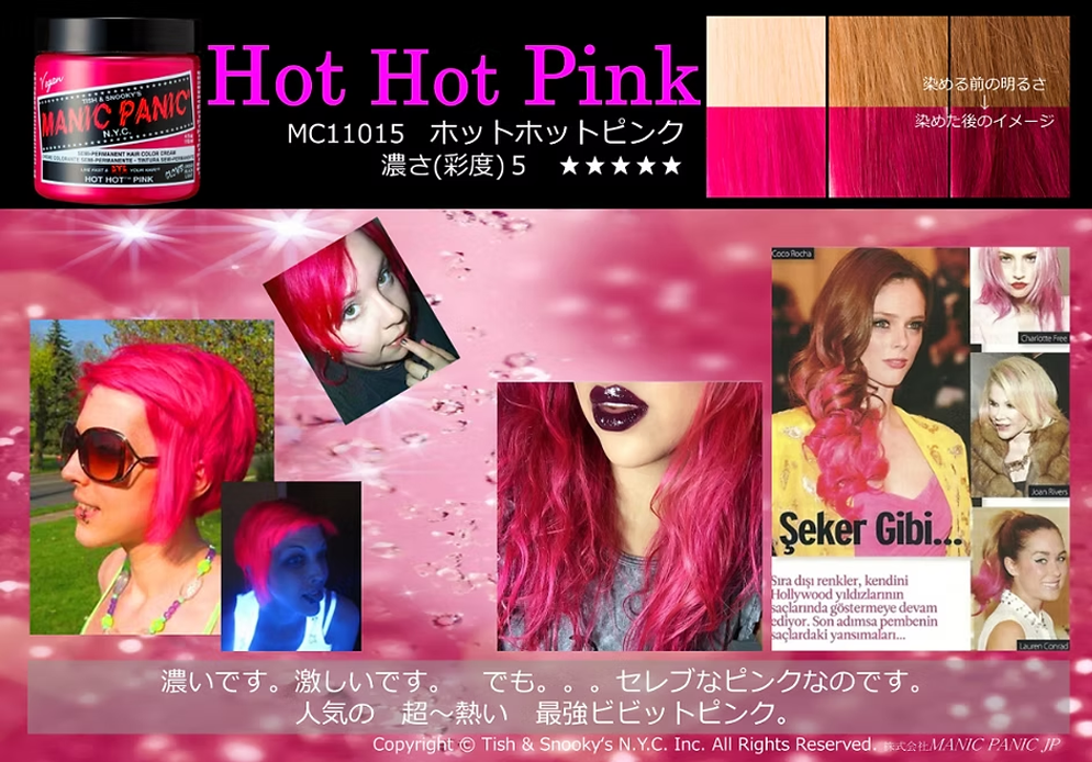 見る者のセンスや芸術性をくすぐるマニックパニックは、最高級の彩度の高さへと髪を染め上げます。