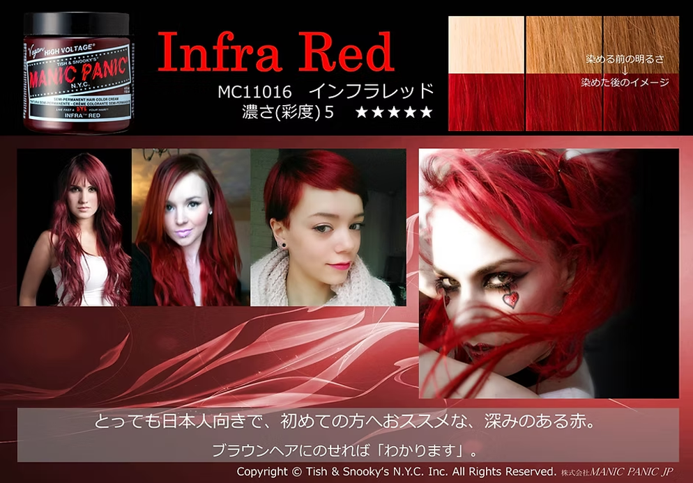 見る者のセンスや芸術性をくすぐるマニックパニックは、最高級の彩度の高さへと髪を染め上げます。