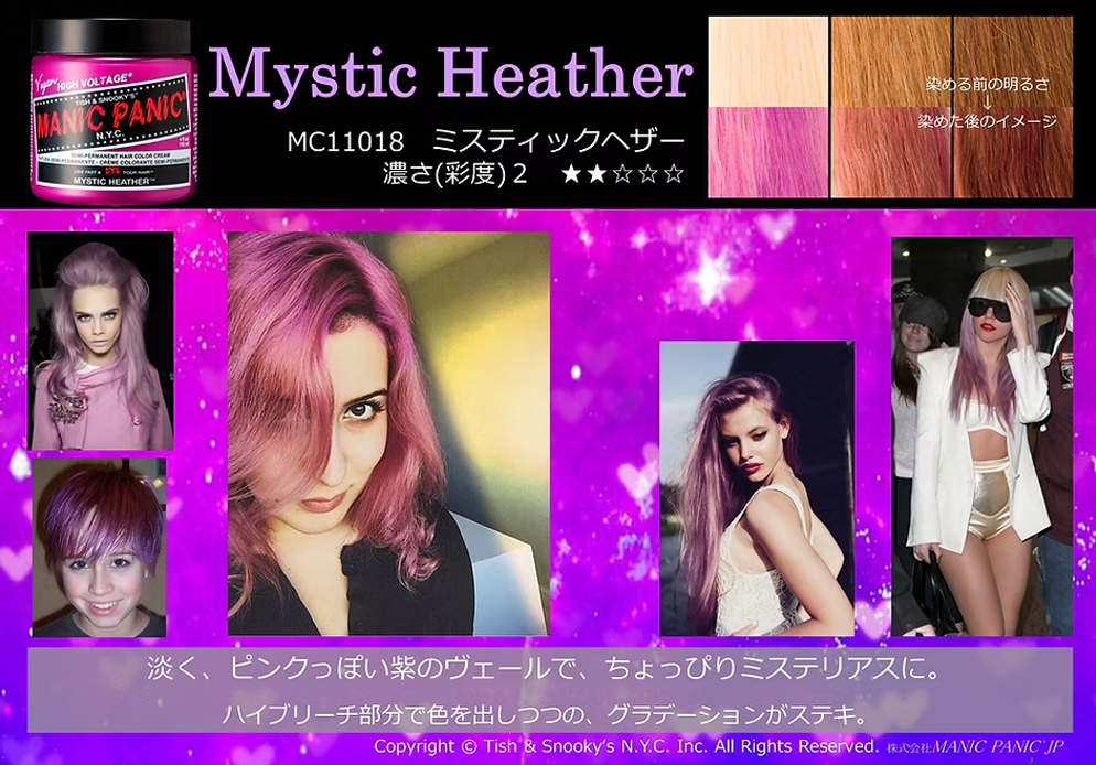 見る者のセンスや芸術性をくすぐるマニックパニックは、最高級の彩度の高さへと髪を染め上げます。