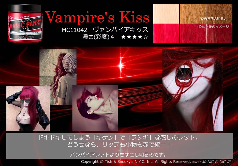 見る者のセンスや芸術性をくすぐるマニックパニックは、最高級の彩度の高さへと髪を染め上げます。