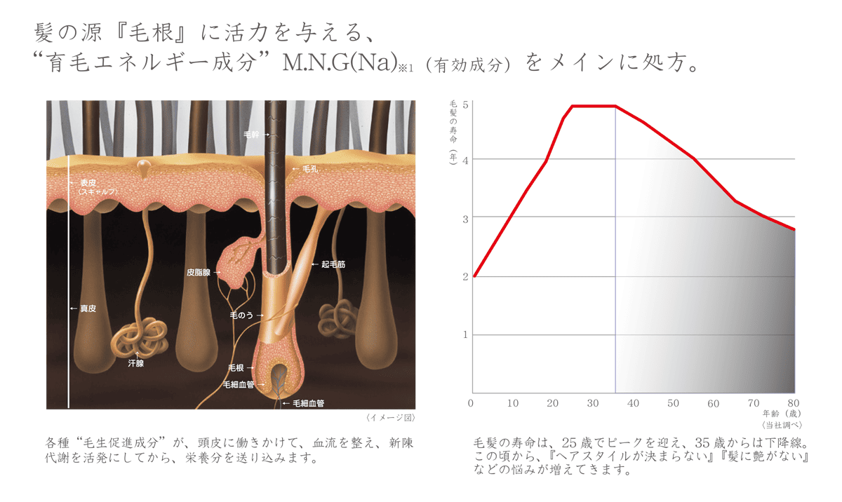 細く、硬くなった毛細血管を効果的に拡張し、毛母細胞を活性化させて、艶のある健康美髪へと導きます。