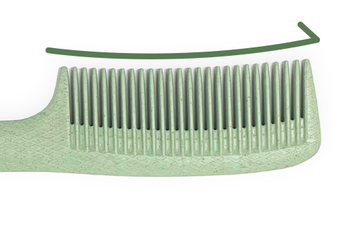 コーム部分は、ゆるーいカーブがかかっていて頭の丸みに沿うようにとけるので頭皮を傷つけにくくスムーズにとけます。