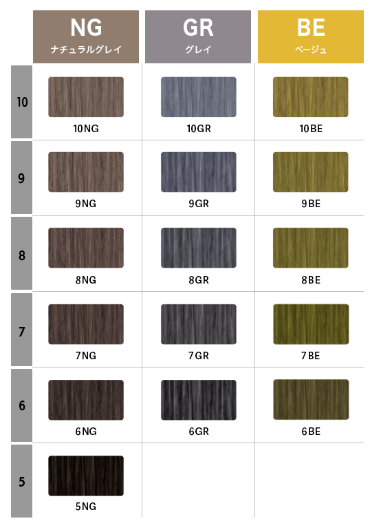 ※ 白30%の髪に基本使用で染めたことを想定したカラーチャートです。
