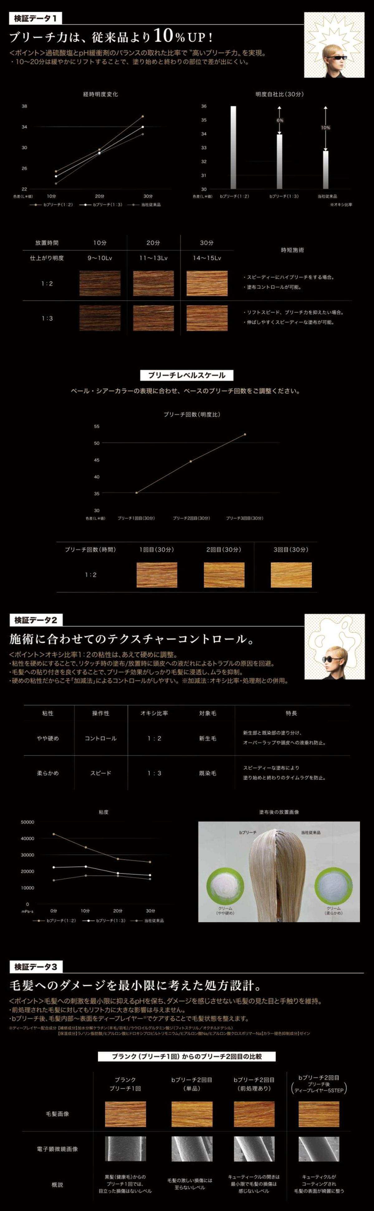 スピーディーなハイブリーチを可能とし、操作性に優れたノンダストタイプの脱色・脱染剤。
