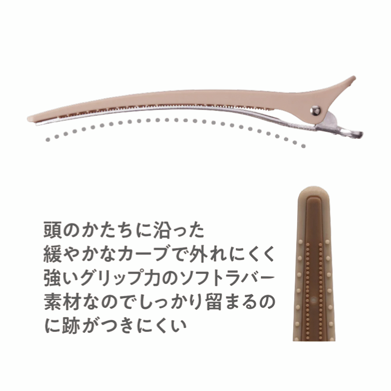 ソフトラバーを上部中央に施しているので、ウェットでもドライでも上下クリップでしっかりと髪をはさんで固定します。