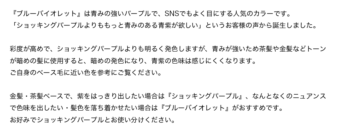 ※ダークシルバー/ココアブラウン/ココナッツブラウン はそのまま原液で使用すると、とても濃い色(暗い)のでご自宅にあるトリートメント(市販のものでもあれば何でもいい)自分の好みに薄めて使用して下さい。