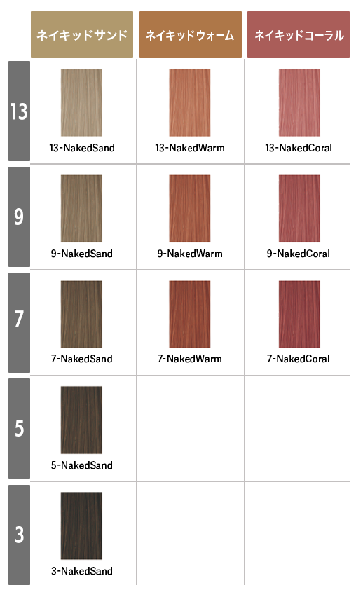 ※ 白100%の髪に基本使用で染めたことを想定したカラーチャートです。