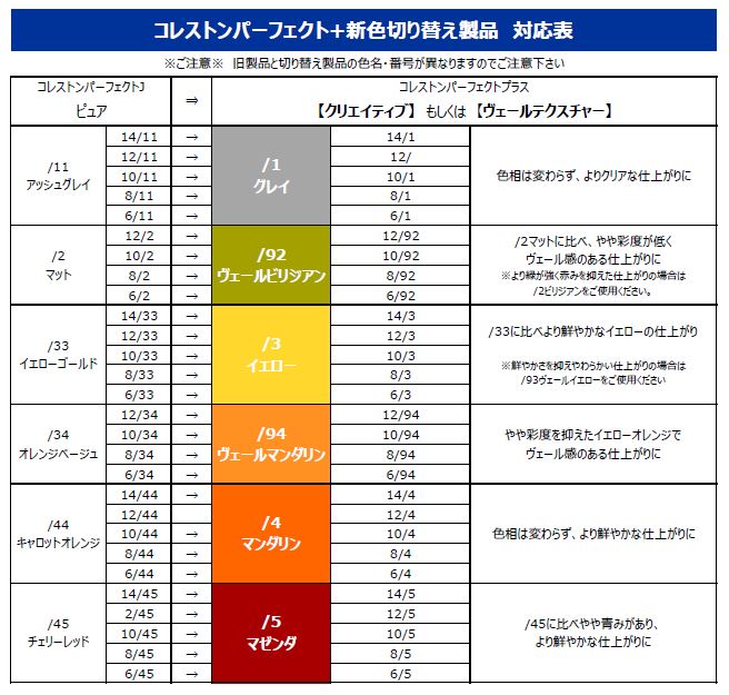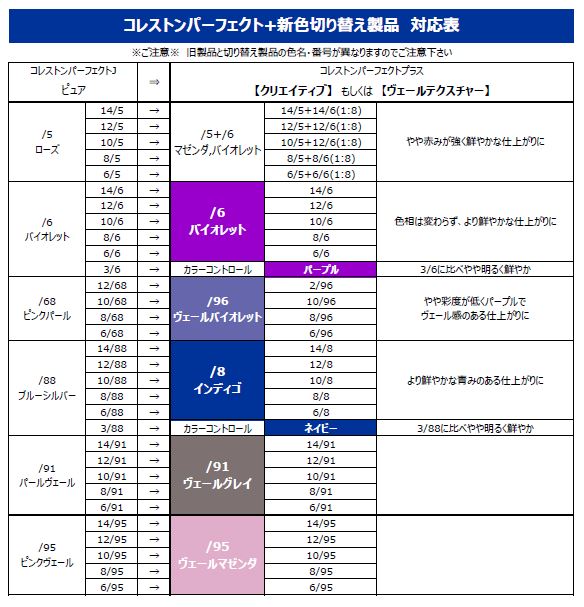 ※ 白100%の髪に基本使用で染めたことを想定したカラーチャートです。