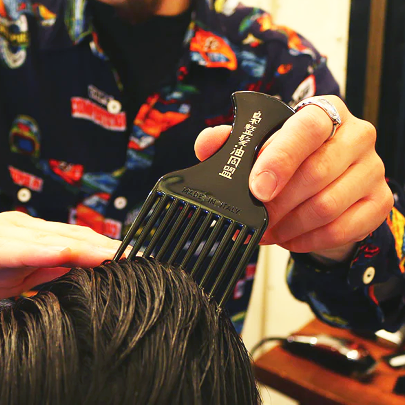 こちらのコームは一般的には"アフロコーム"と呼ばれており、バーバースタイルにおいてはポンパドールなどのヘアスタイルで、前髪の高さを出すスタイリングの際に使用頂く事で、 簡単に、そして質の高いスタイリングを実現することが可能となっております。