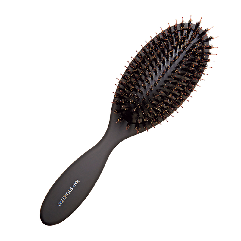 先玉ナイロンとソフトな豚毛をクッション性のある毛台にミックス植毛した頭皮と髪をやさしくいたわるクッションブラシです。