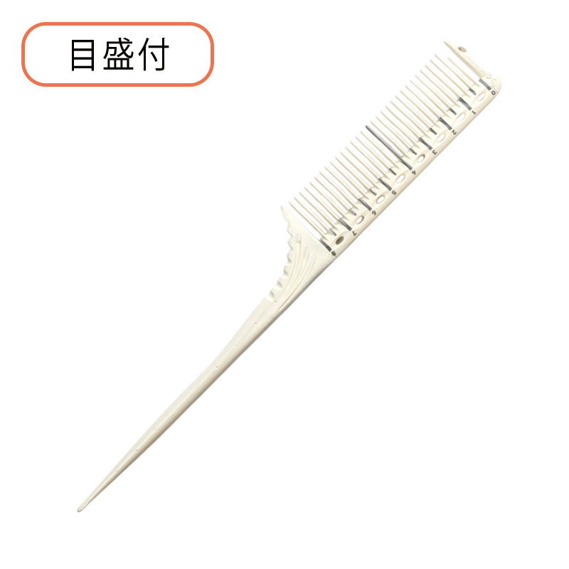 国家試験・コンテストに於けるワインディング技術の粋を集めた、ブロッキングの取りやすさに特化した機能が詰まったブロッキング用コーム「YS-185」に目盛りを印字した目盛付きコーム。