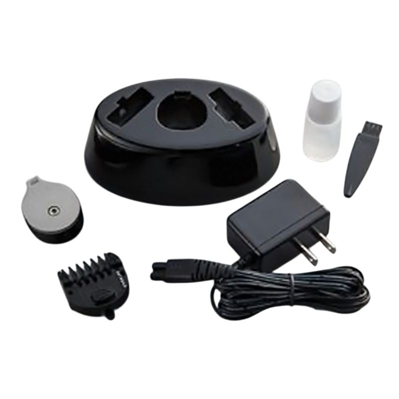 充電スタンド、ACアダプター、ラインカット刃、オイル、掃除用ブラシ、コーム付き