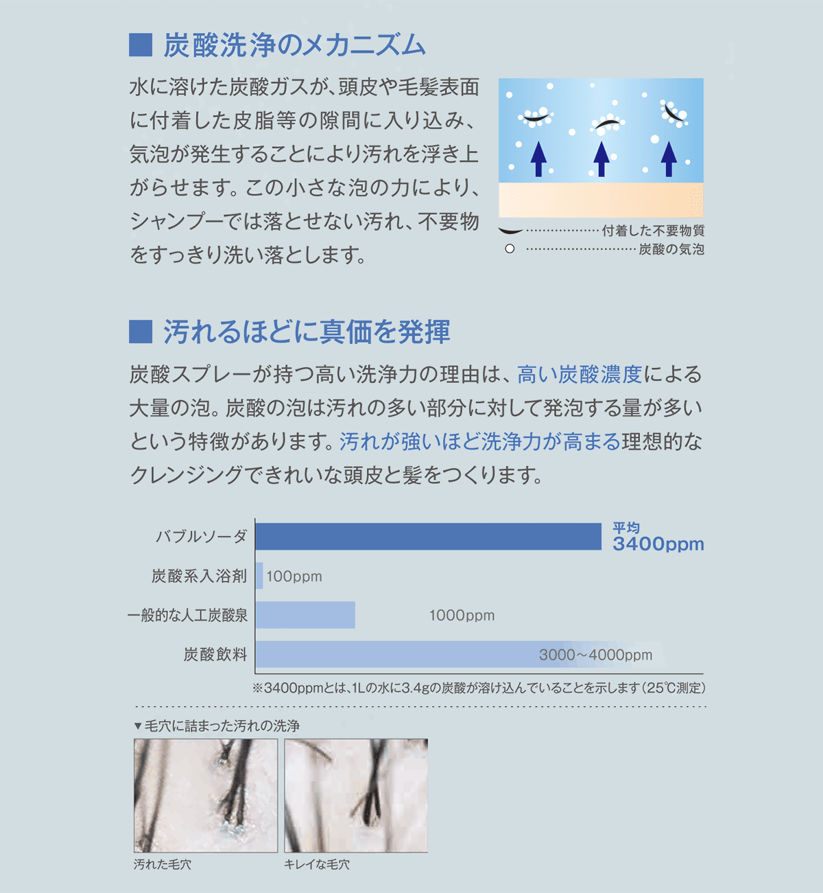 ・頭皮や毛穴に蓄積した汚れ、皮脂などを洗浄