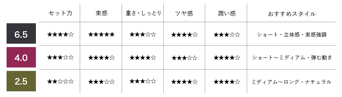 うるおい感のある仕上がりでツヤ感も程よく、手触りのよいまとまりを叶えます。