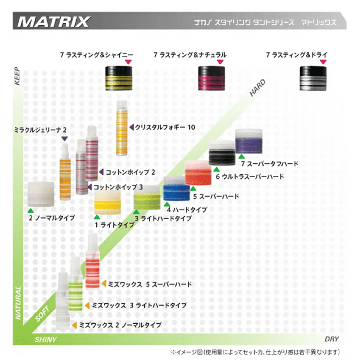 ドライな質感で思い通りのヘアスタイルを長時間ハードに保ちます。
