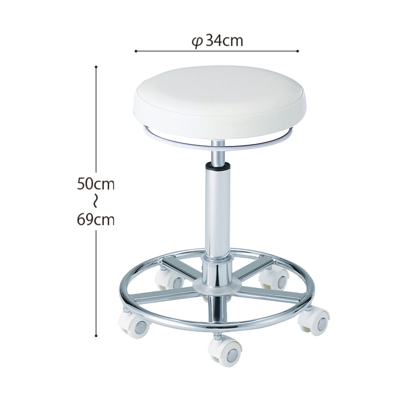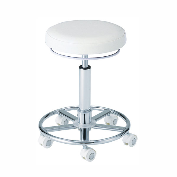 リングステップ、全方向操作式のリング昇降レバー、お掃除メンテナンスキャスターを装備した高機能スツール。