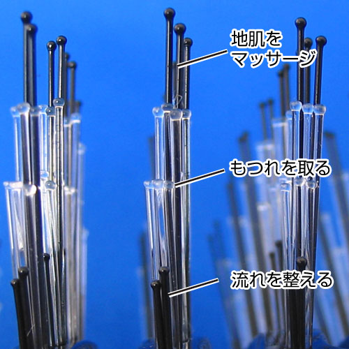 髪の流れを美しく整え、もつれを取り、同時に地肌を気持ちよくマッサージ。