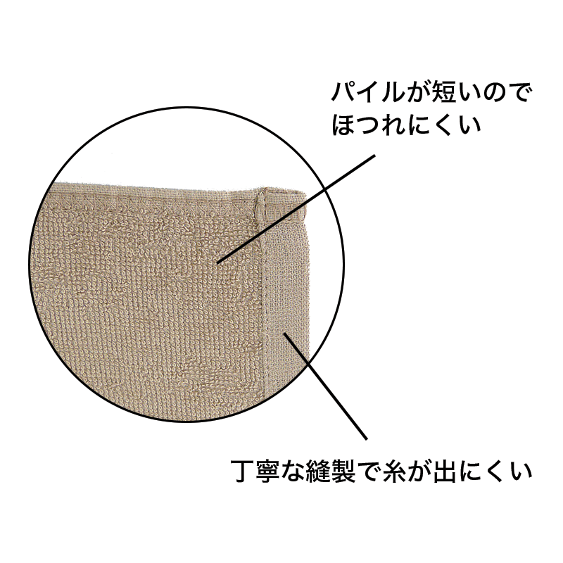ヘム(布の端)部分は折り重ねて縫い、端の部分は縦縫いを施しているため、ほつれにくくなっています。