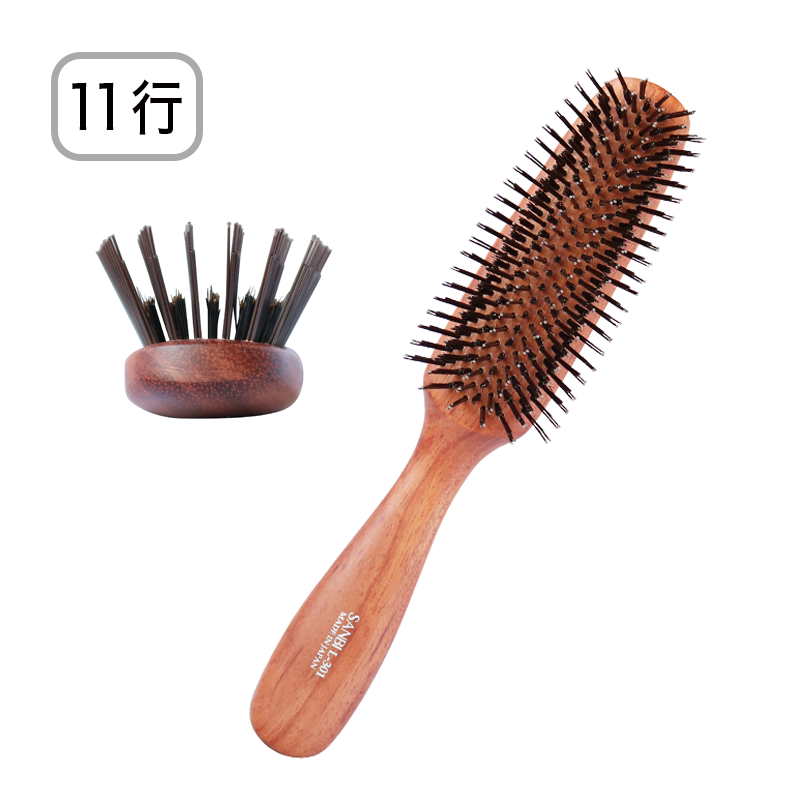 地肌に届くナイロンと、ツヤ出し効果が期待できる豚毛のペア植毛。