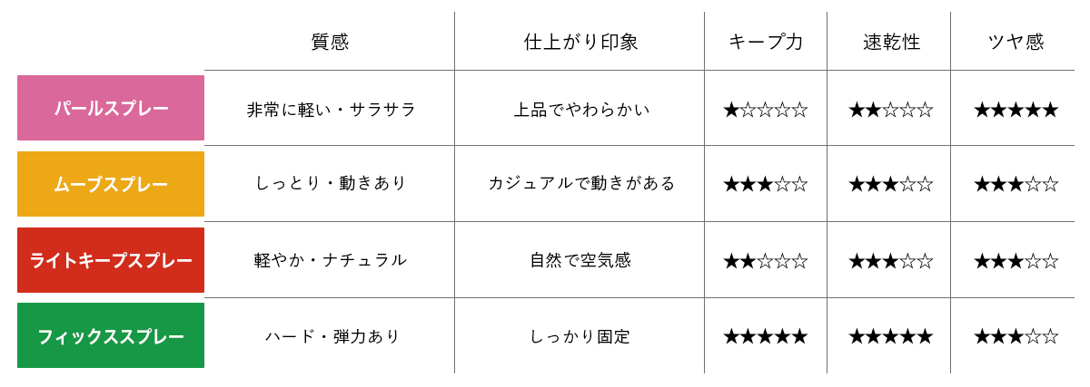 適度なセット力と軽い質感で、ツヤのある仕上がりへ導くスタイリングスプレー。
