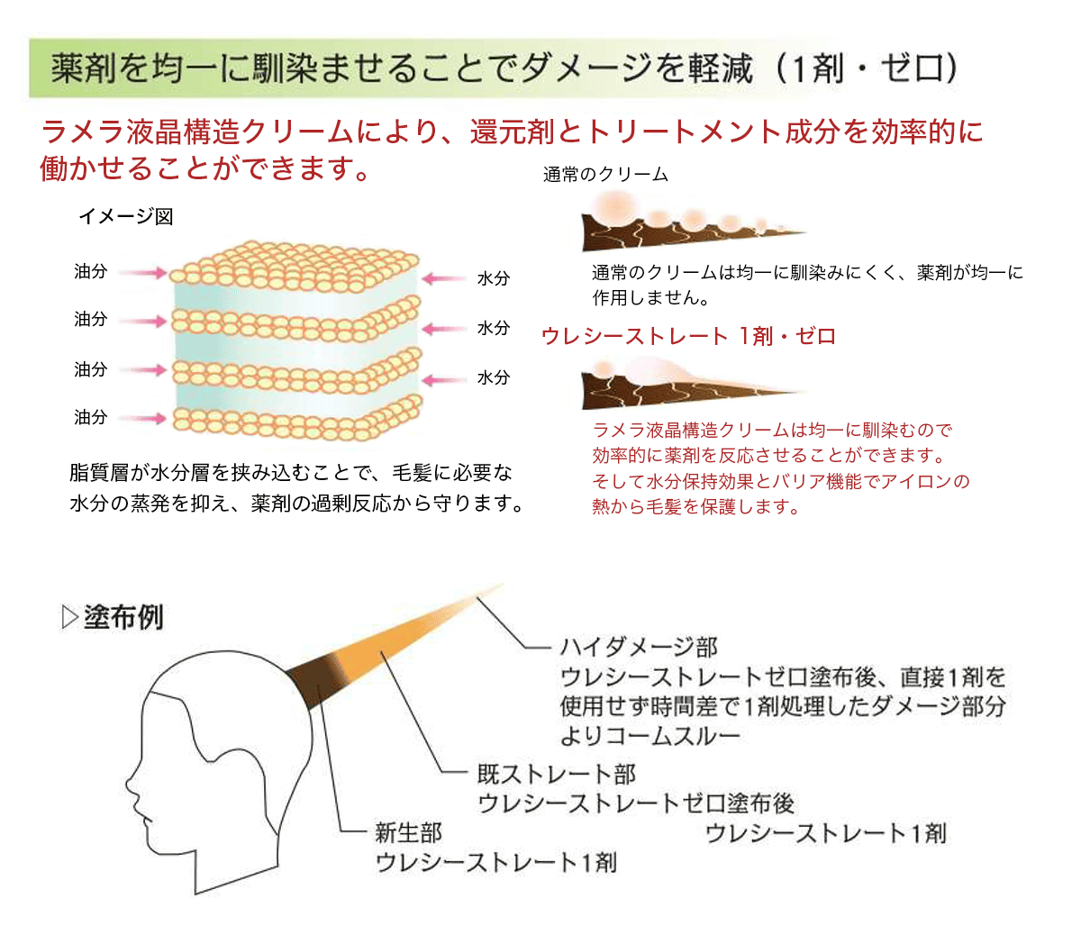 ラメラ液晶構造クリームにより、還元剤とトリートメント成分を効率的に働かせることが出来ます。