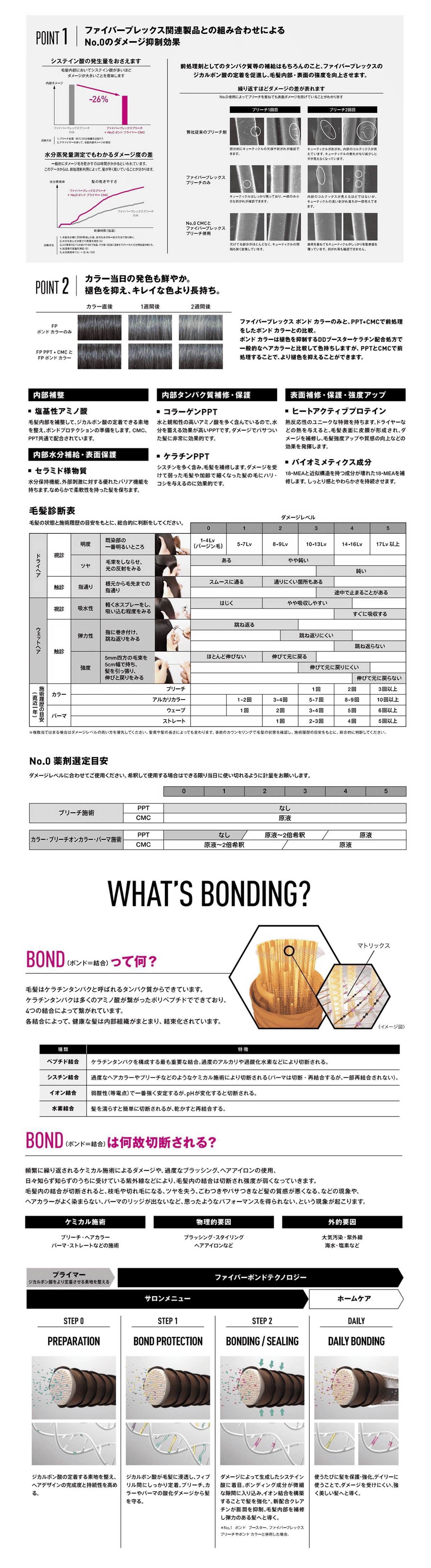 ファイバーポンドテクノロジーは、バサつく、ツヤがない、切れる、ごわつく、そんなダメージによる髪の悩みを補修で解決するのではなく、毛髪を保護・強化し、ダメージを受けにくい髪へと導くことでサポートする革新的テクノロジーです。