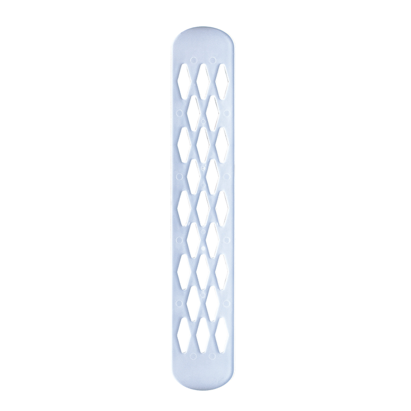 多くの穴が薬液の浸透を助け、毛髪にも手にもやさしく角のないデザインです。