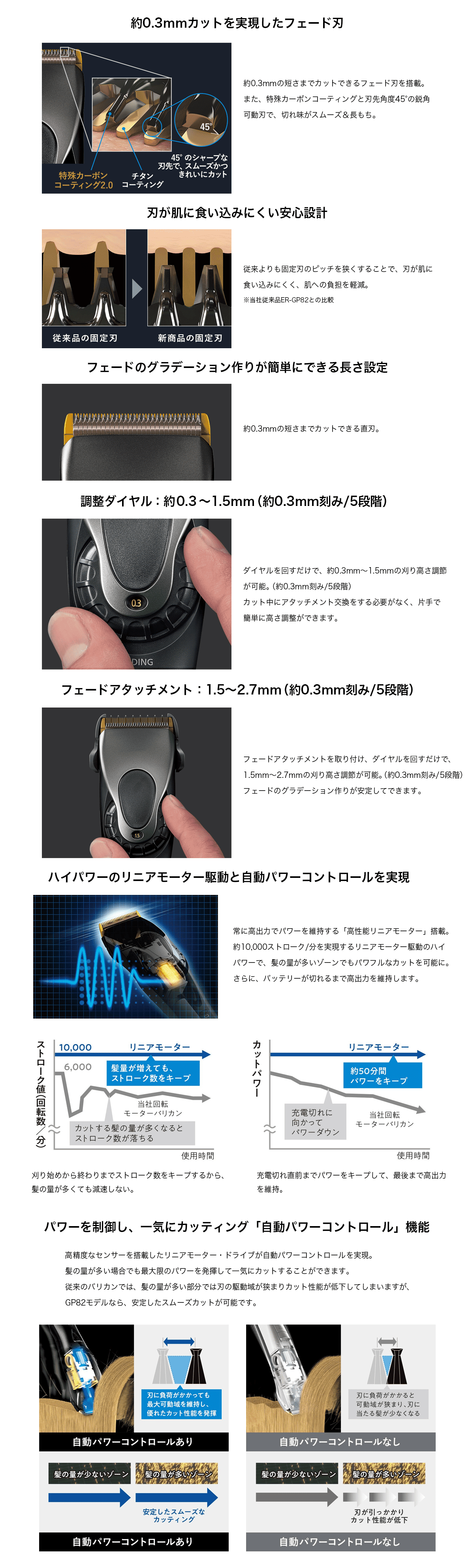 約0.3mmのフェード刃搭載で精密カットを実現。