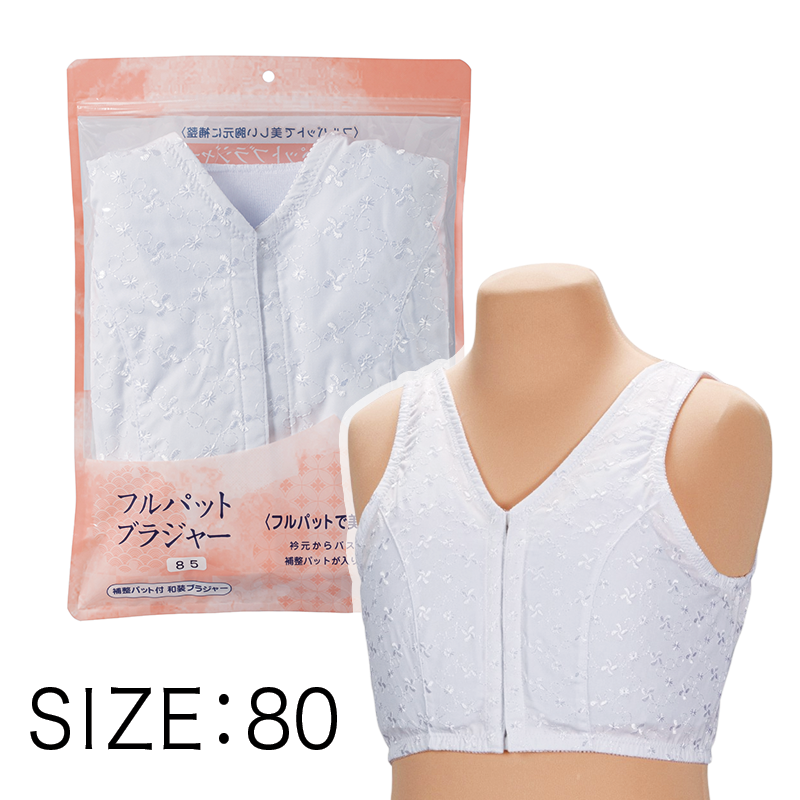 フロントホックで衿元からバストにかけて全面に補正パットが入ります。