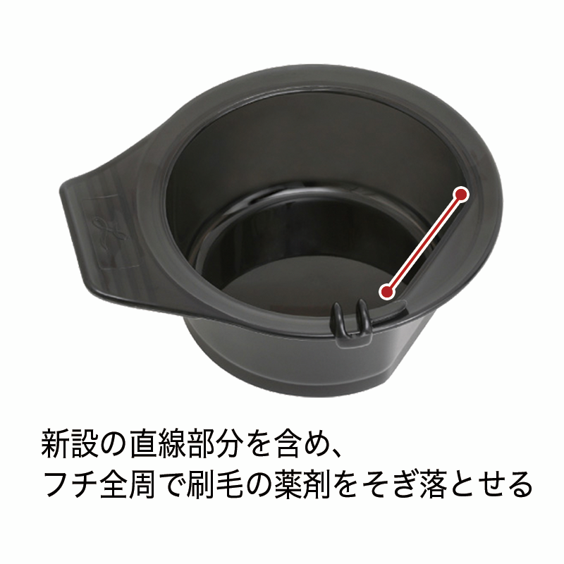 新設の直線部分を含め、フチ全周で刷毛の薬剤をそぎ落とせる。