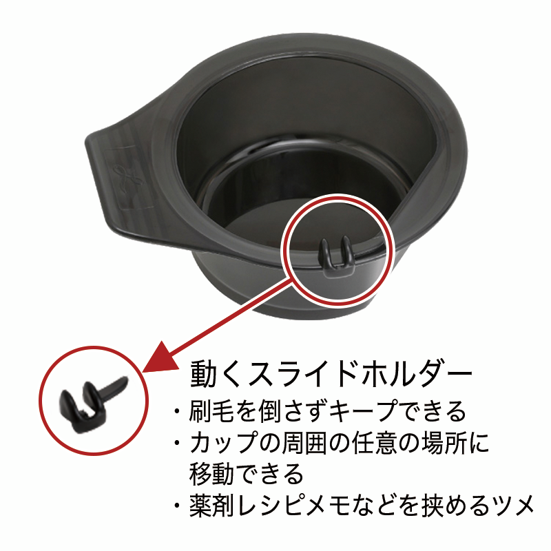 特許・意匠出願中 刷毛を倒さずキープできる「スライドホルダー」付き。