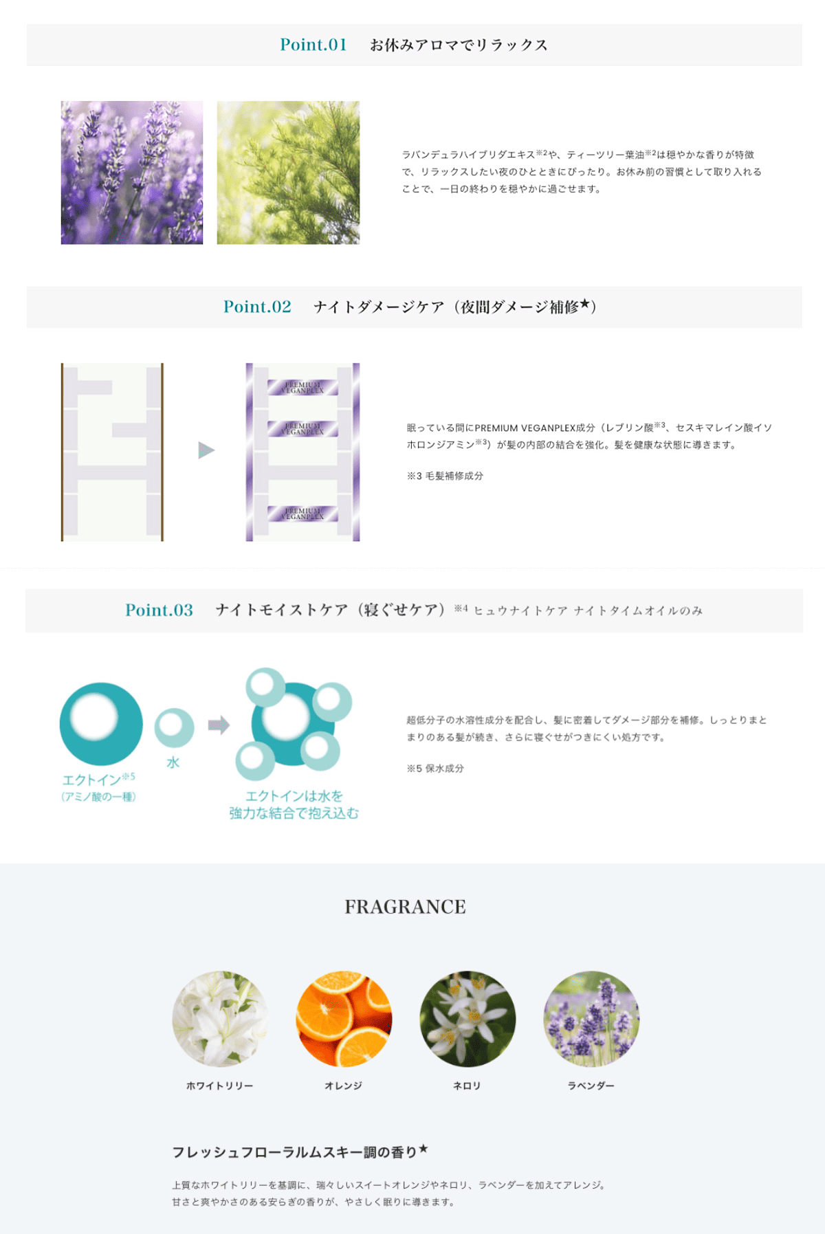 ヒュウナイトケアシリーズは、睡眠と髪の健康の密接な相互作用に着目して開発されました。