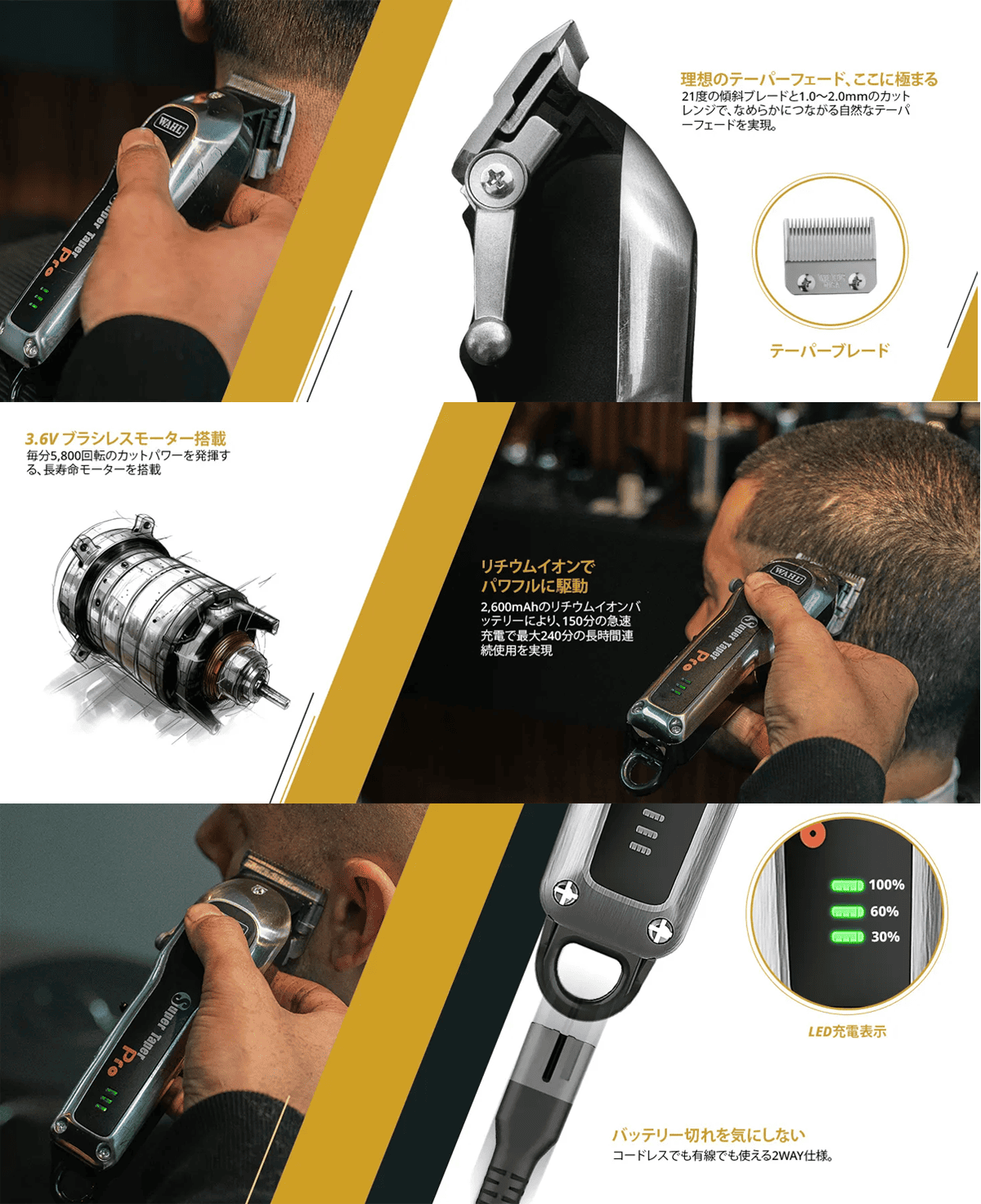プロ仕様の精密カットを実現するコードレスクリッパー