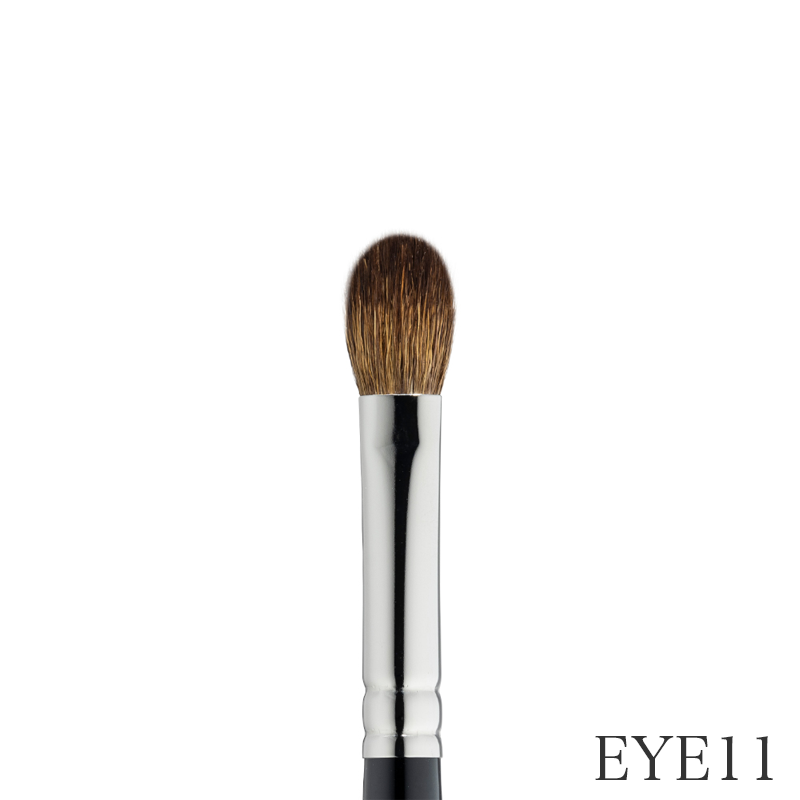 アイホール用のアイシャドウブラシ。目の際から上に向かってブラシをすべらせると簡単にグラデーションが得られます。ブレンディングにも使えます。