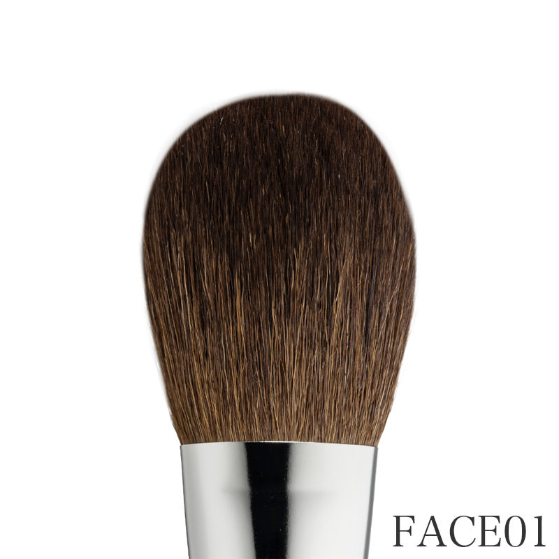 顔全体にルースパウダーやパウダーファンデーションを乗せるためのブラシ。毛量が多くコシが強いのでカバー力に優れています。