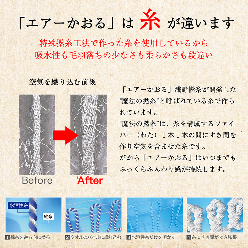 手触りはフワッとやわらか。軽いのに、文句無しの吸水力。