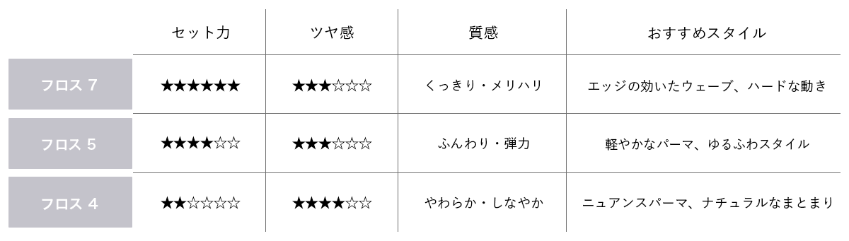セット力を抑え、質感を整えることに重点を置いた設計により、パーマ特有の乾燥やパサつきを効果的に抑制。