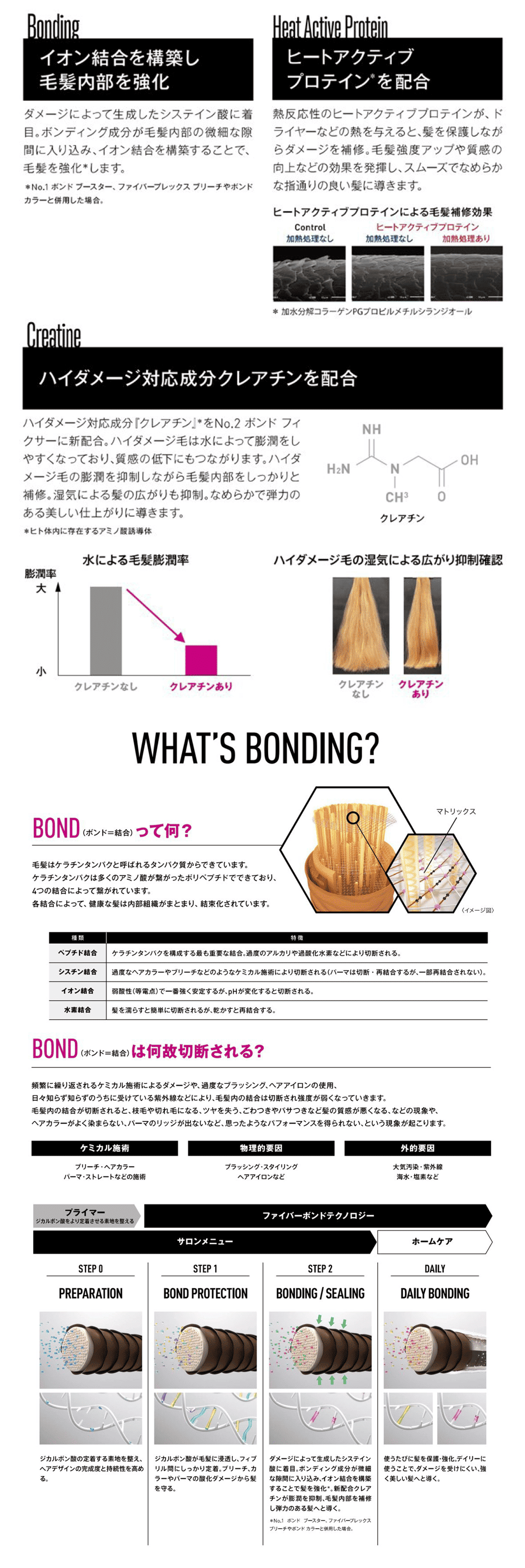 ダメージを受けにくい強い髪へと導く「ファイバーボンドテクノロジー」搭載。